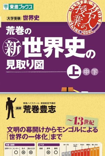 ☆東大生が勧める参考書 【世界史】荒巻の世界史見取り図 東大世界史のバイブル。通史を解説した参考書。個別の知識よりも制度や流れを解説しているため、大論述など、流れを重視する東大の論述対策と非常に相性が良い。 難易度:★★☆☆☆ 有用性:★★★★★ 分かりやすさ:★★★★★