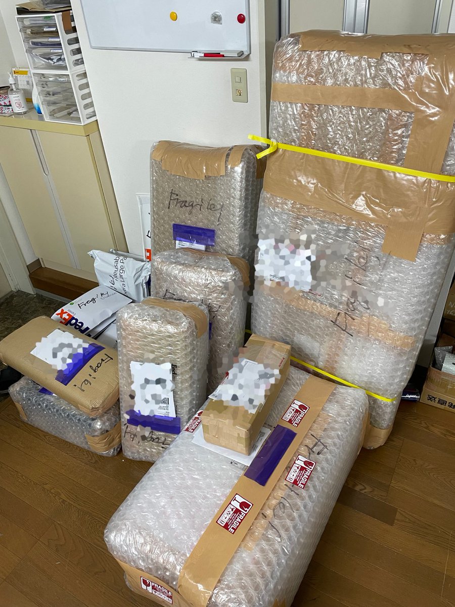 今日も何とか集荷までに間に合った💡 パートさんの梱包スピードには脱帽✨ 海外発送で特に大事な梱包アイテムは、布テープとデカプチ この2アイテムは絶対に切らしてはいけない パートさんが安心して梱包に取り組めるように、こちらは環境と道具を揃えてあげると良きです🙋♂️
