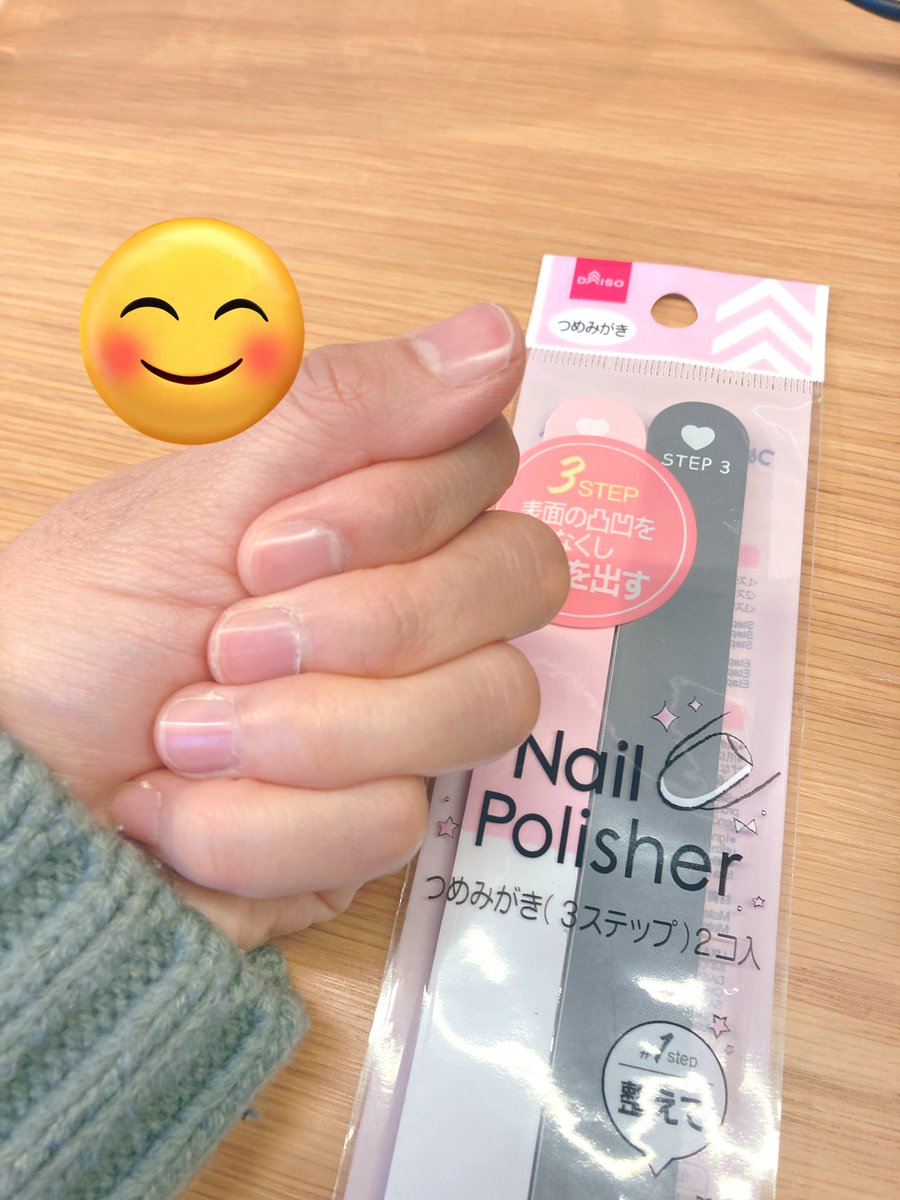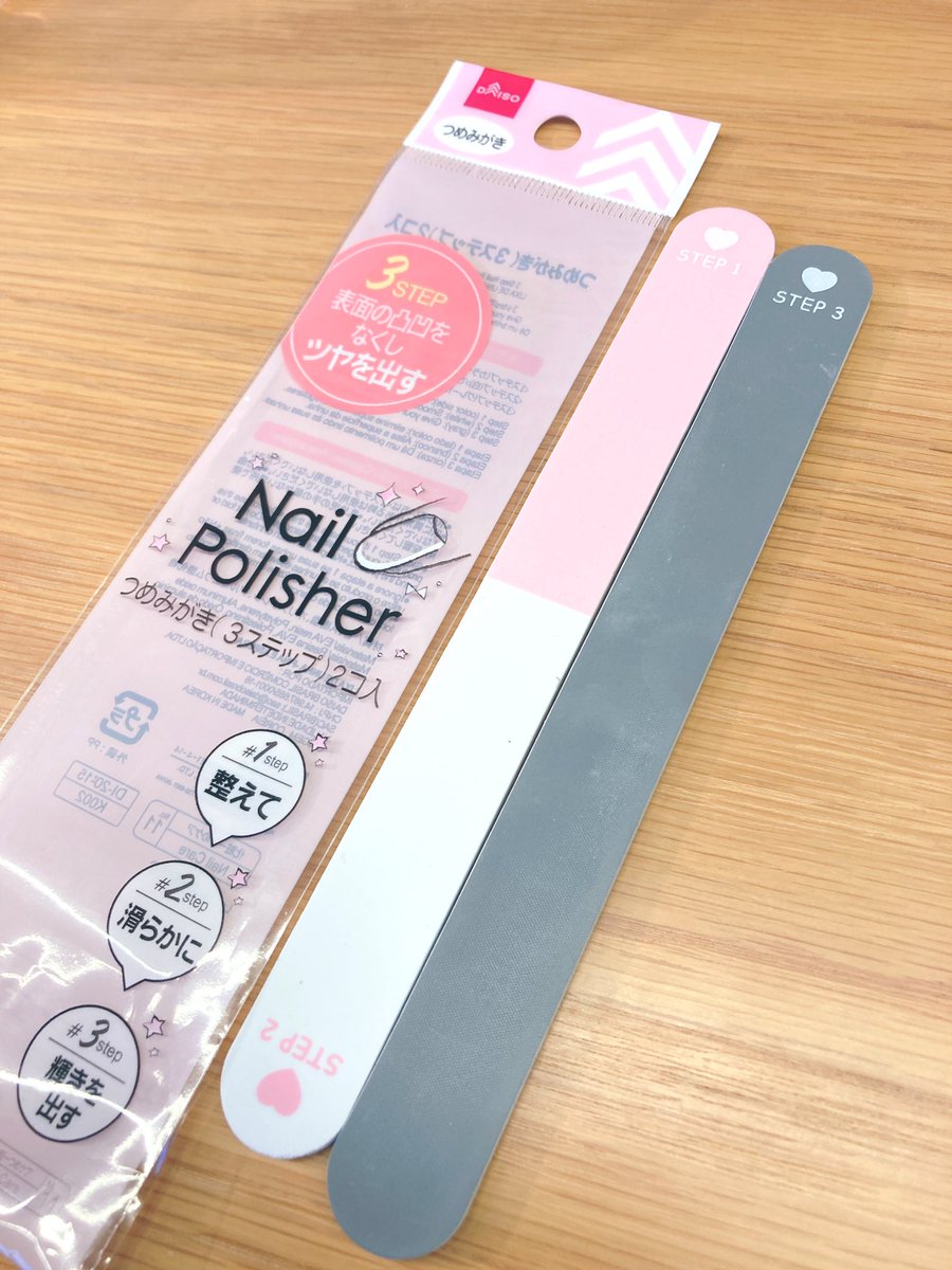 ダイソーの爪磨きで爪磨いてみた✨簡単3STEPで縦じわも消えて、グレーで3回くらいこすったら速攻で超ツヤピカ🫶🏻ネイル塗れない主婦には便利だよね🥹✨ 爪磨き ネイルケア