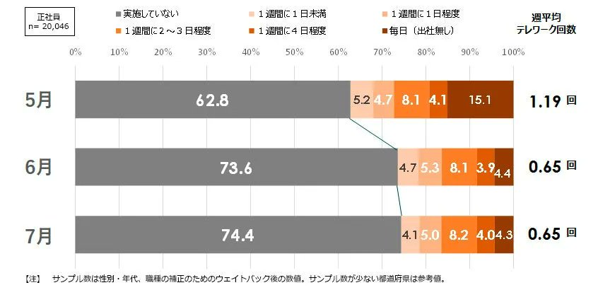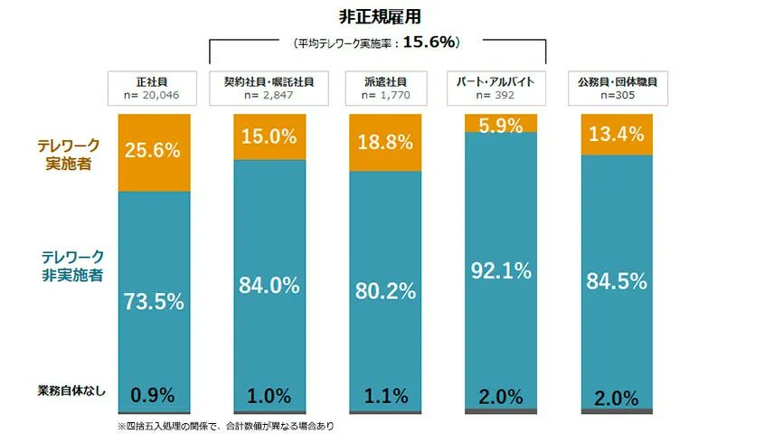 第七回・新型コロナウイルス対策によるテレワークへの影響に関する調査~正社員のテレワーク実施率は全国平均で25.6%、2022年2月末から微減【パーソル総合研究所】 在宅勤務
