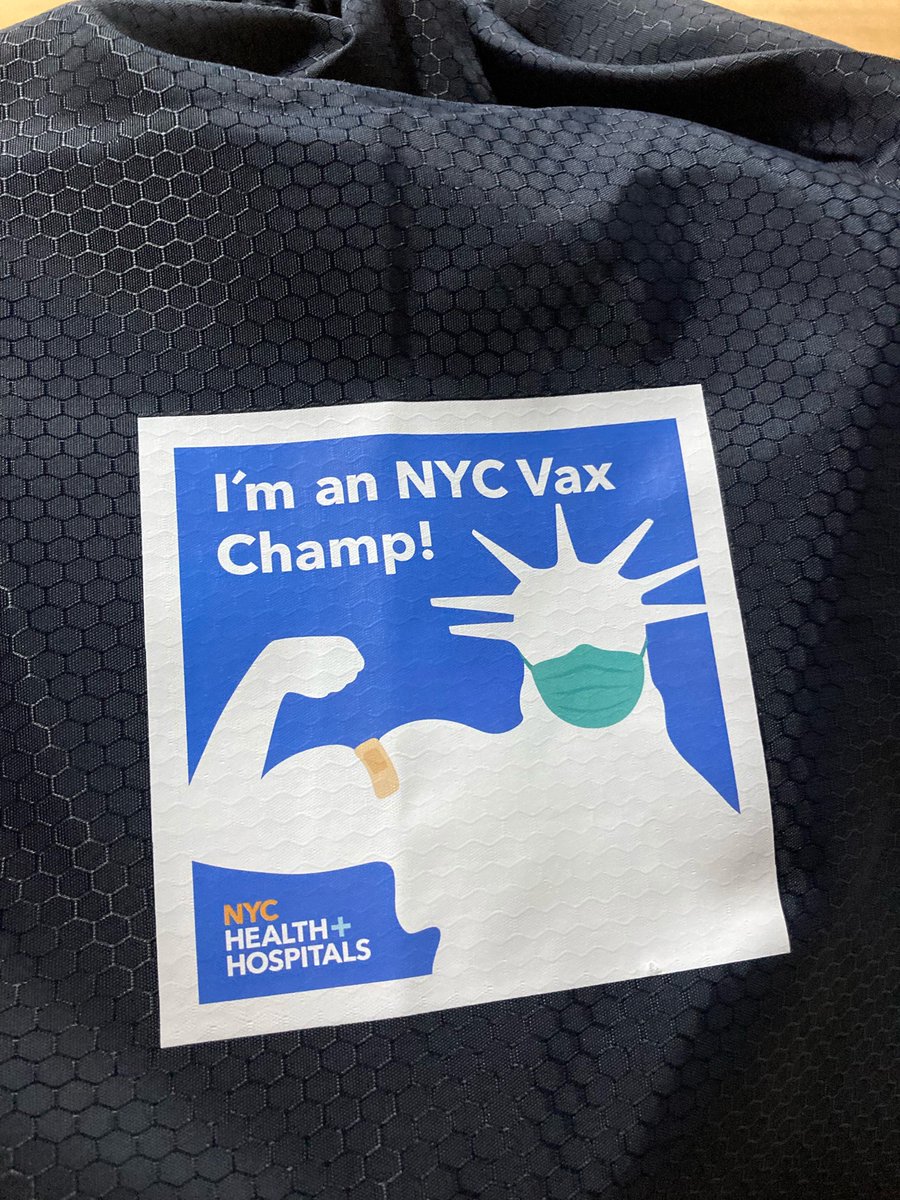 メッツのシティフィールドでワクチン接種すると色々なグッズがもらえるというのでメッツのグッズがもらえるのかと思ったらNYCのワクチン接種グッズだった。このロゴの入ったTシャツとニット帽と缶バッジが巾着に入っていた。想像と違った。